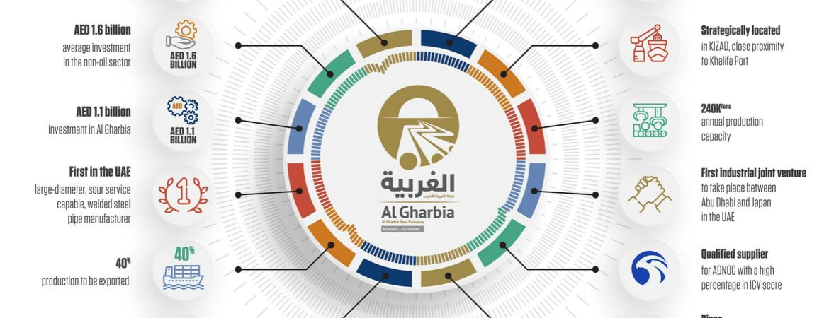 Established as a joint venture between SENAAT and two of Japan’s leading companies in the steel sector, JFE Steel Corporation and Marubeni-Itochu Steel, Al Gharbia Pipe Company is the first industrial joint venture to take place between Abu Dhabi and Japan in the UAE, strengthening the rich history of commercial projects connecting the two nations.