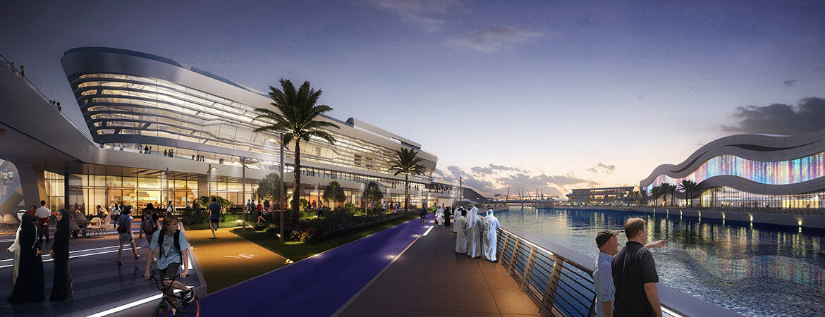 Al Qana is a landmark that will be positioned prominently in the social fabric of Abu Dhabi, and close to the heart of the new city. It will also be near other major developments and attractions, such as Warner Bros, Ferrari World, and Louvre Abu Dhabi, with a direct eye-line view of Sheikh Zayed Grand Mosque, which attracts millions of visitors a year.