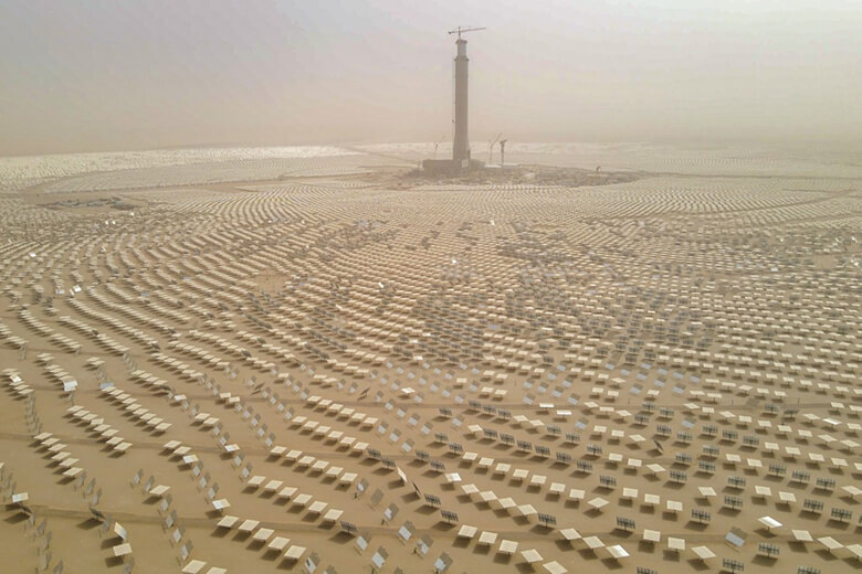 This project covers 44 square kilometres and has broken many world records, including the lowest Levelised Cost of Electricity (LCOE) of USD 7.3 cents per kilowatt-hour (kWh) for the 700MW CSP and USD 2.4 cents per kWh for the 250MW photovoltaic solar panels.