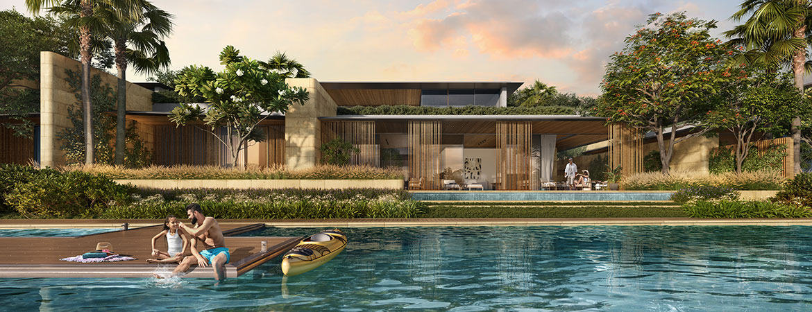 The four-bedroom Water Bungalows are designed as resort villas, with individual living areas, private gardens, large living spaces, and an architectural approach that embraces indoor-outdoor living. Each property will also feature a roof lounge and terrace, with dominating views of the nearby crystal lagoon and the terrain beyond. With an emphasis on sophistication and tranquility, the bungalows’ inviting atmospheres, alluring indoor garden courts, and deliberate design elements synergise to create a seamless flow of movement, resulting in a modern urban retreat where luxury and nature coexist in perfect harmony.